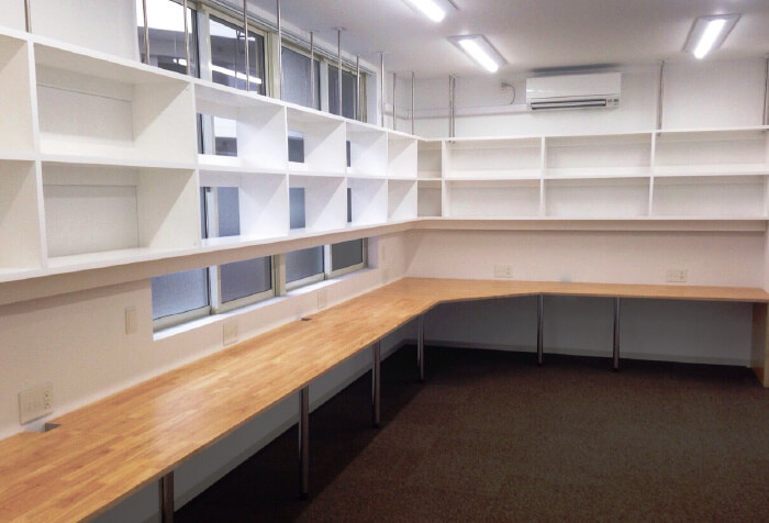 こだわりの家具こそ弊社の得意分野です。建物寸法に合わせた大型の特注家具や組み方に工夫した図書館用の家具を納品・設置することができました。